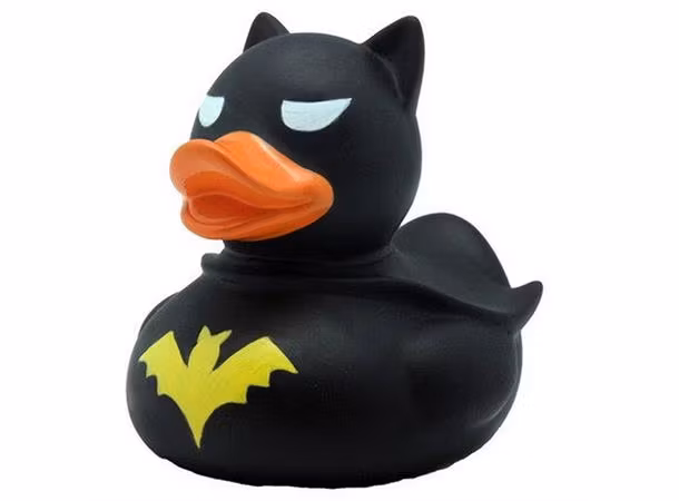 Badanka Batman. En säker vinnare! Innehåller ej giftiga material. 8 cm höjd. Våra badänder finns i många olika utformningar. Kul ge bort present!