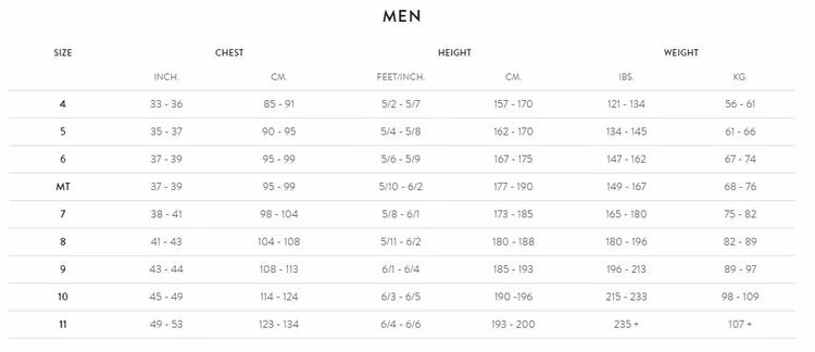 MT | 95 - 99 cm | 177 - 190 cm | 68 - 77 kg |