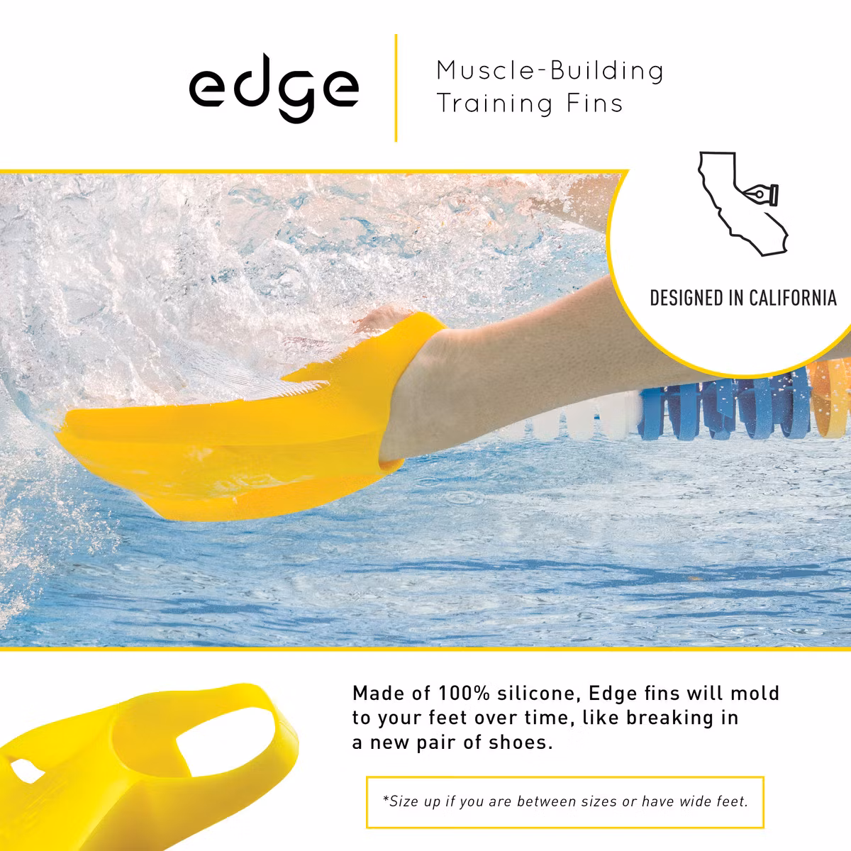 Smidiga simfenor i silikon designade för att ge dig snabbare kraft i sparkar och bättre kontroll i vattnet.