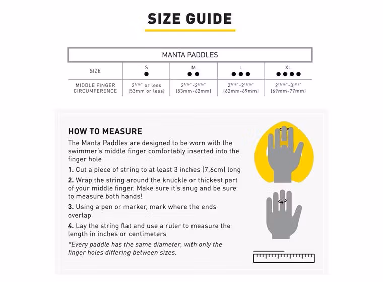OBS - det är både storlek hand och kunskapsnivå på simning (och lite styrka) som avgör vilken storlek på paddlar. Men har du för stora händer ska du inte ta för små.